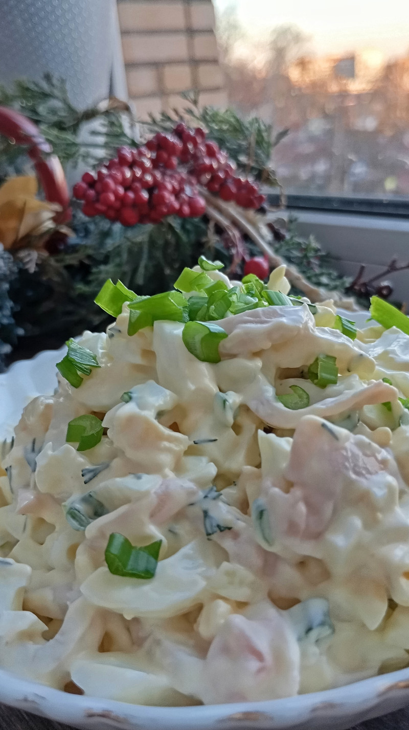 Кальмары в рассоле( рассол слила) + отварной яйца+ зелёный лук и майонез ( майонез можно на йогурт заменить кому надо)