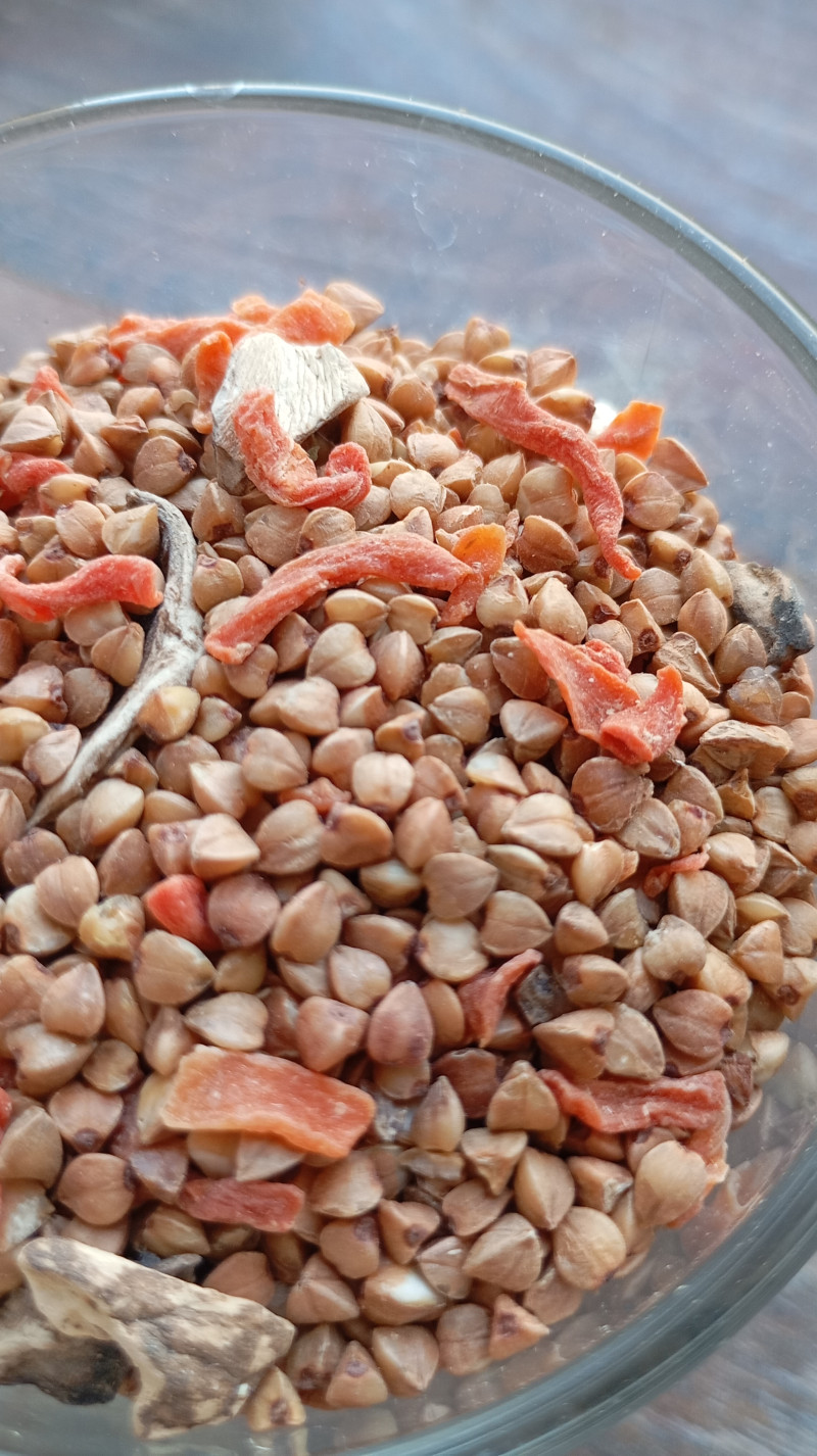 А еще ради интереса купила в магазине Чижик такую гречку, в принципе вполне себе да. Грибов и морковки вполне достаточно, думала будет мало, но нет. Сверху украсила жареным грибами.