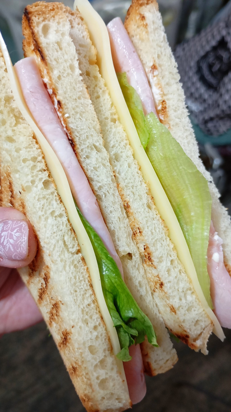 Его бутеры и моя тарелка с завтраком, кума вчера своё молоко, яйца, привезла и микрозелень. Не помню что это, редис что ли, ну зеленушки с остринкой некой, приятный вкус.