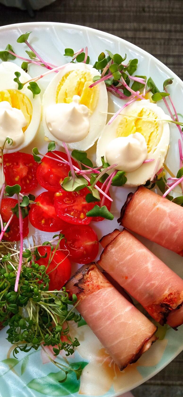 Доброе утро. Сегодня вставать не рано, поэтому есть возможность собрать сына на работу))) Его бутеры и моя тарелка с завтраком, кума вчера своё молоко, яйца, привезла и микрозелень. Не помню что это, редис что ли, ну зеленушки с остринкой некой, приятный вкус.