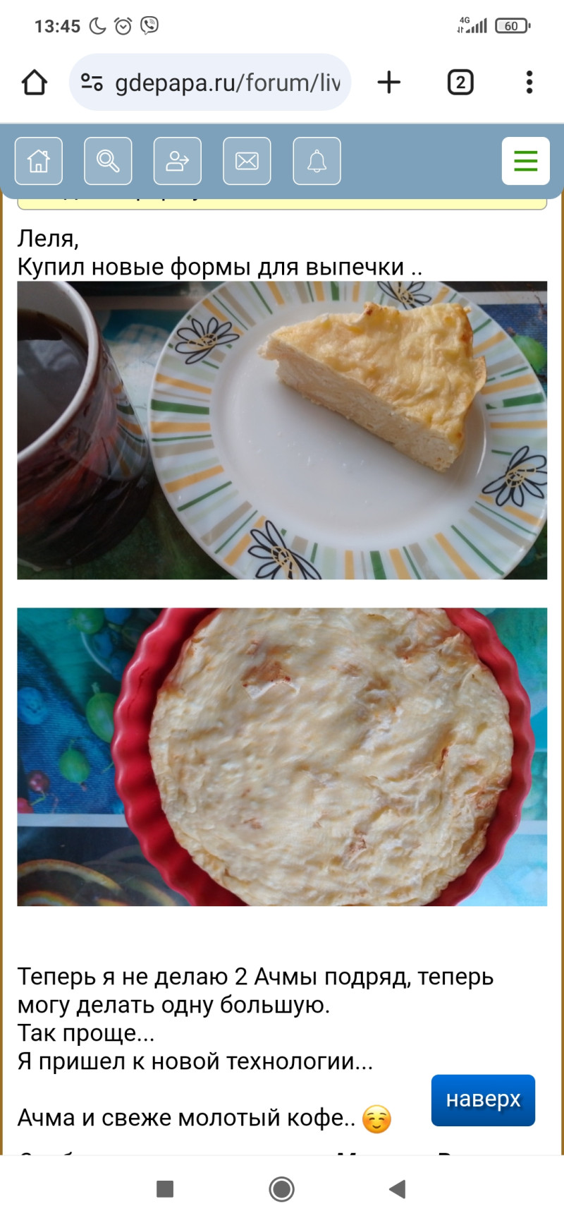 Леля, Купил новые формы для выпечки .. Теперь я не делаю 2 Ачмы подряд, теперь могу делать одну большую. Так проще... Я пришел к новой технологии... Ачма и свеже молотый кофе..