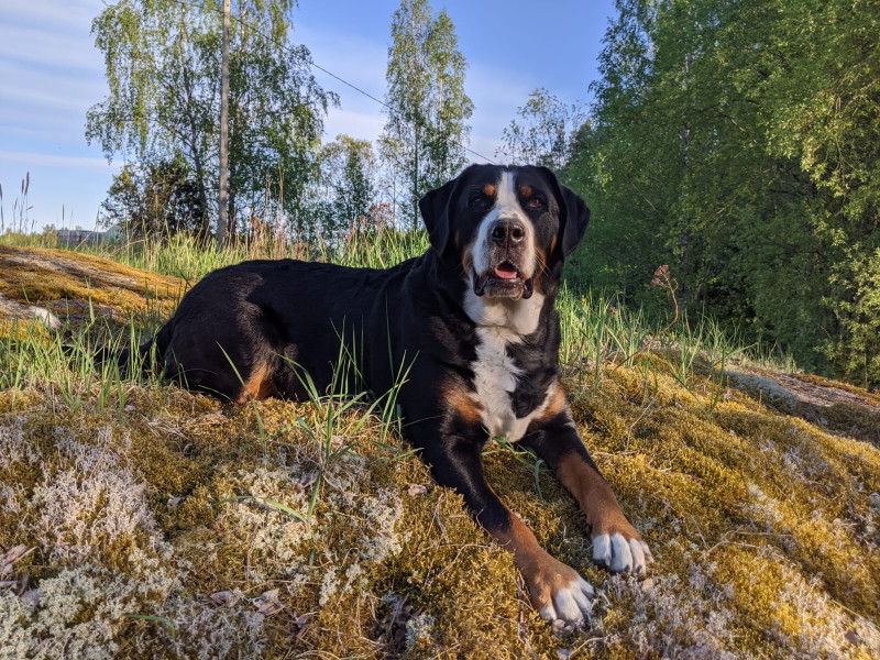 Она спокойная, как и все сибы. Любит рядом быть, но чтобы не гладили. Как кошка)) Очень любит лазерную указку. Постоянно её выпрашивает и дома и на улице.