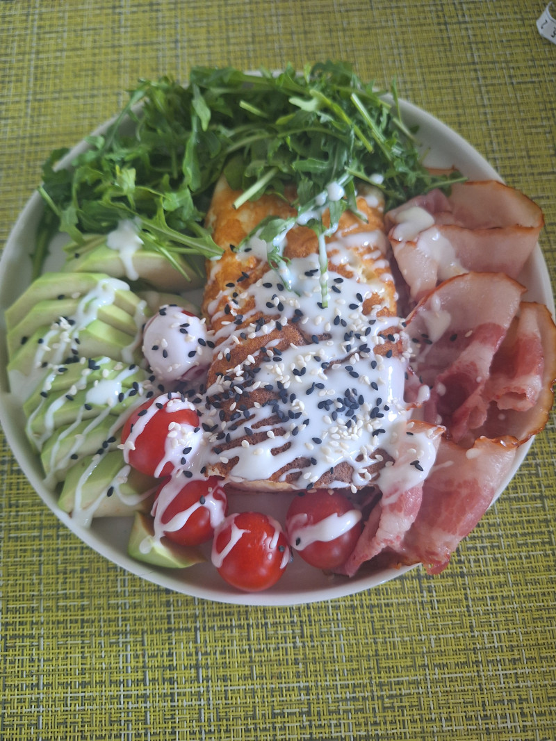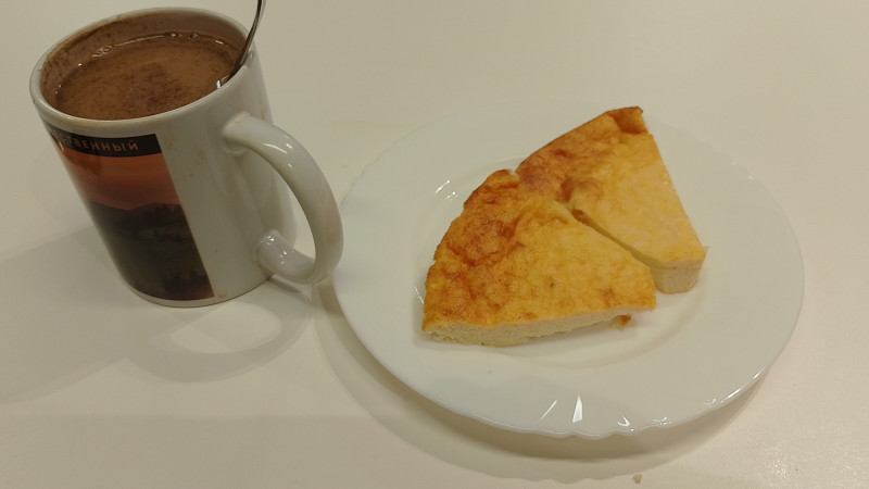 Завтрак кофе с молоком и два наггетса у сына отжала.