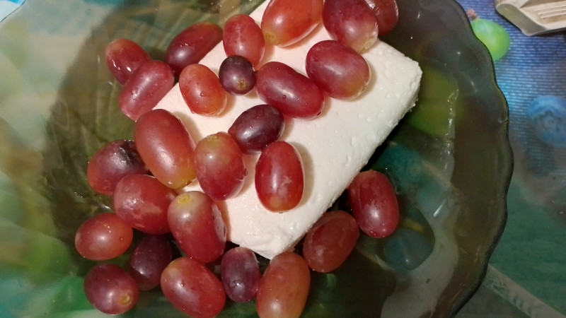 Ужин: Морковь, яблоко и манго, творог и виноград ..