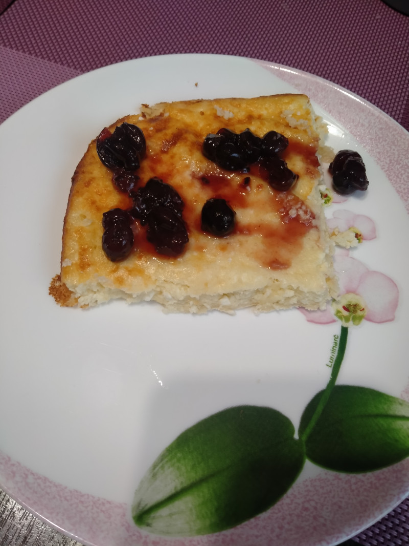 Три ложки манки, два яйца, ванилин, сахарозаменитель по вкусу. Оставляем на 15 минут набухать манку. Две пачки творога, одну упаковку мягкого творога, или две три ложки сметаны. Всё смешиваем, добавляем по вкусу начинку: изюм, вишню, курагу, короче что есть ))) Выкладываем в смазанную маслом форму, сверху мажем тонким слоем сметаны... И в духовку на 180 градусов, на 40 минут.