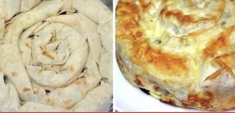 На каждый намазываешься начинку и закатываешь рулетом. На противень складываешь три рулета улиточкой. 500 мл кефира и три яйца с солью перемешиваешь и заливаешь улитку. Сверху положить несколько слайсов сливочного масла и кунжутом присыпать. Выпекать до зарумянивания.