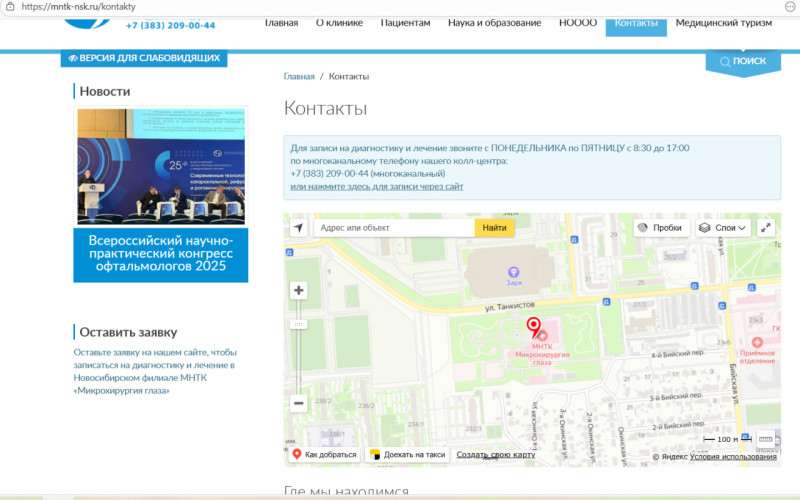 Вначале на сайте всё читаете и узнаете через форму обратной связи или по телефону. Далее, если вопрос решается положительно, вам дают очередь (не быстро, ждать месяц и более). К этому времени покупаете билет на поезд Бийск-Нск, бронируете гостиницу на ЛЕВОМ берегу (если надо - всё расскажу, где и как лучше) - и приезжаете. Как добраться с вокзала до гостиницы, а потом до МНТК - я расскажу - всё легко и даже без такси)))