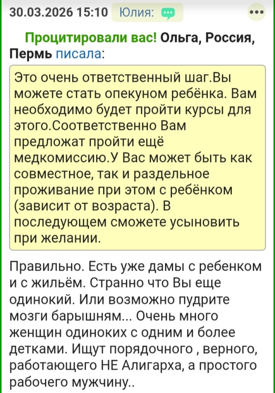 Всем привет. Я давно "мусолю" эту тему.Мне 39 лет, к сожалению, мне не удалось стать папой. Но я очень этого хочу, а мне почти 40.Если у меня нет партнёрши, кто разделяет мои ценности и не представляется возможным её найти - в России, какие у меня шансы?Суррогатное материнство стоит очень дорого, дороже родов - точно.И правовая база у нас не просто слабая - мужчина, кто согласится в России на эту полулегальную "услугу", в правовом поле вообще не защищен.Вариант только восполь