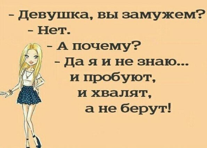 Это уже ближе к нашей тонкой организации)) Вспомнилось: - Любимый, возьми меня! - Спи, я никуда не еду.