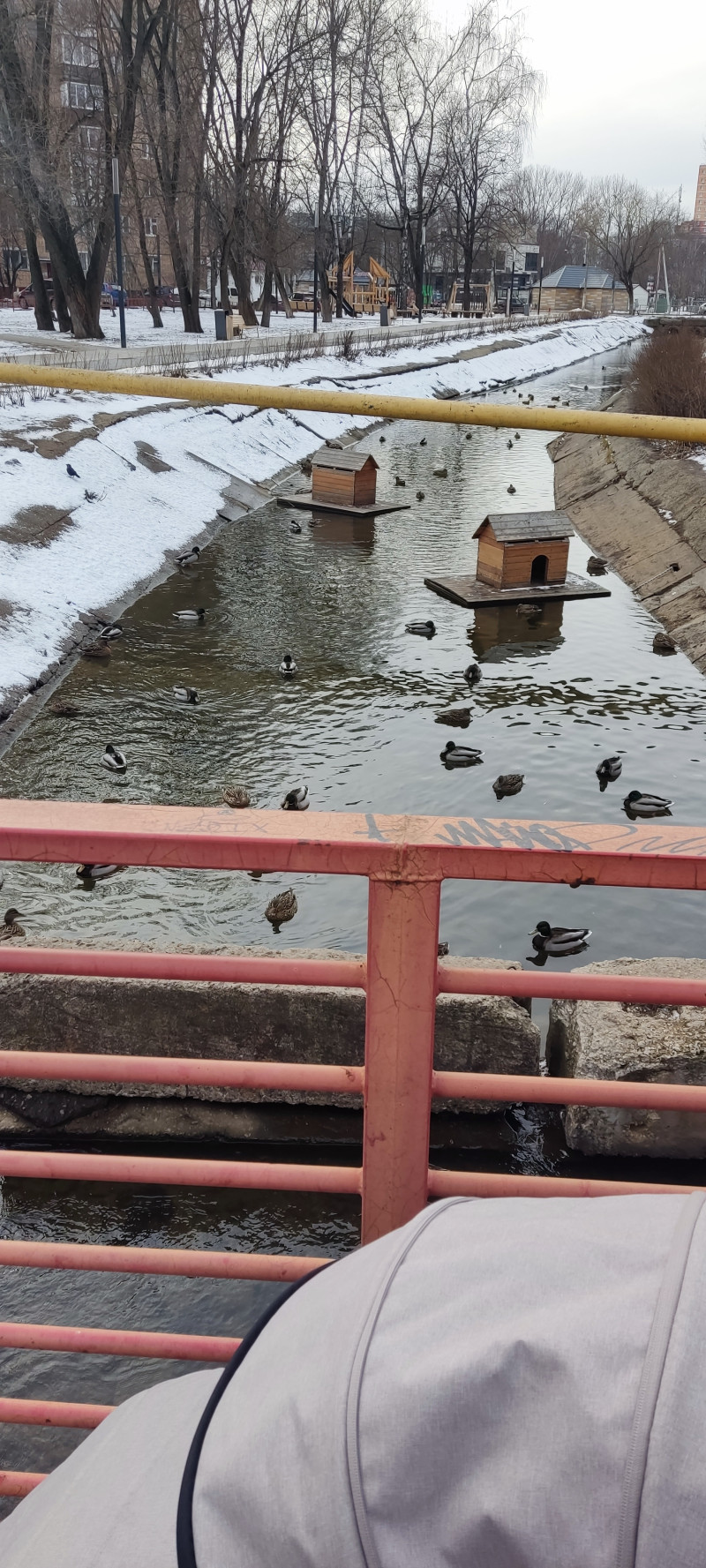 На фото 17 марта, когда сначала потеплело, потом резко похолодало. Бедеые уточки