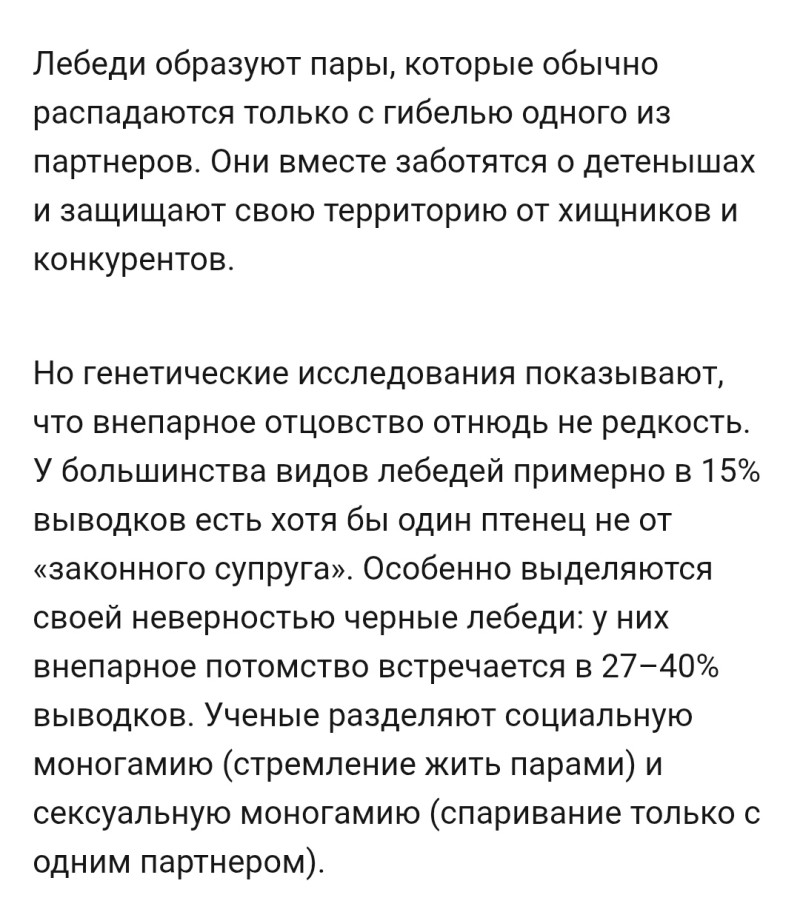 "бездетные" пары лебедей могут распадаться, а могут забрать чужую кладку, раз. Если самец слаб, то самка может уйти к более сильному, успешному самцу, два.