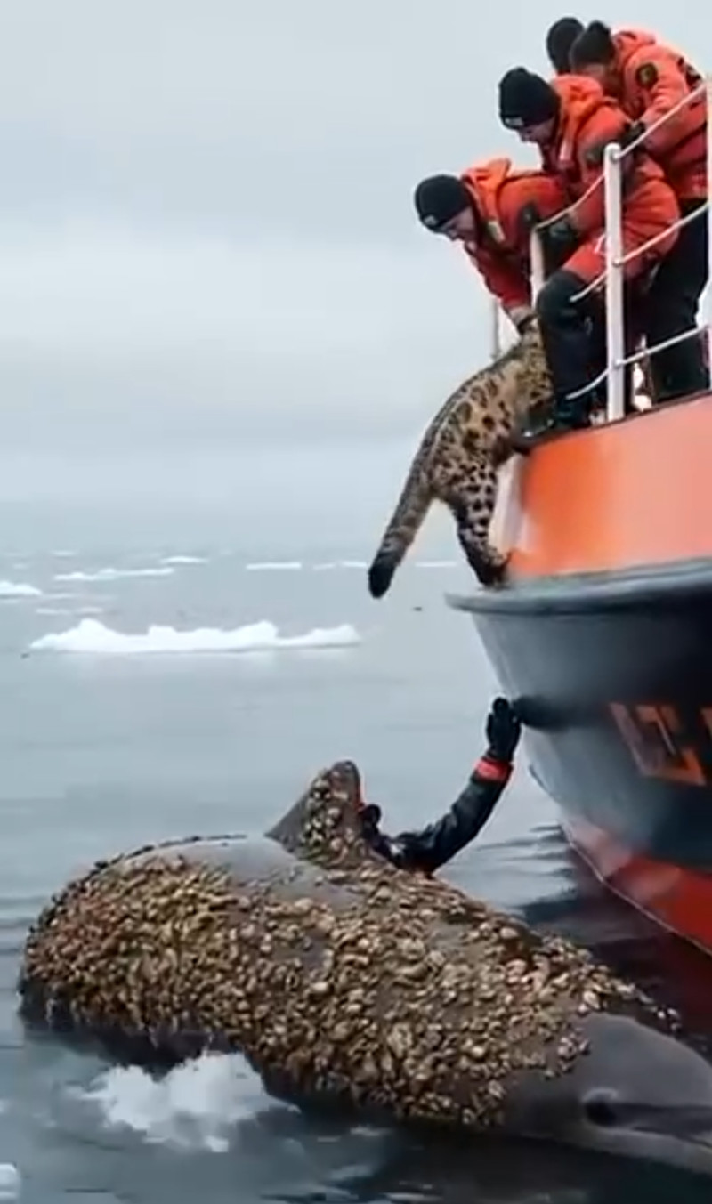 Среди молчаливых льдин, где время кажется остановившимся, в холодных водах арктического шторма спасательная команда заметила странное движение. Из серого безмолвия медленно, как будто с усилием, поднималась спина крупного морского существа. Но не это привлекло внимание. На спине… кто-то лежал.