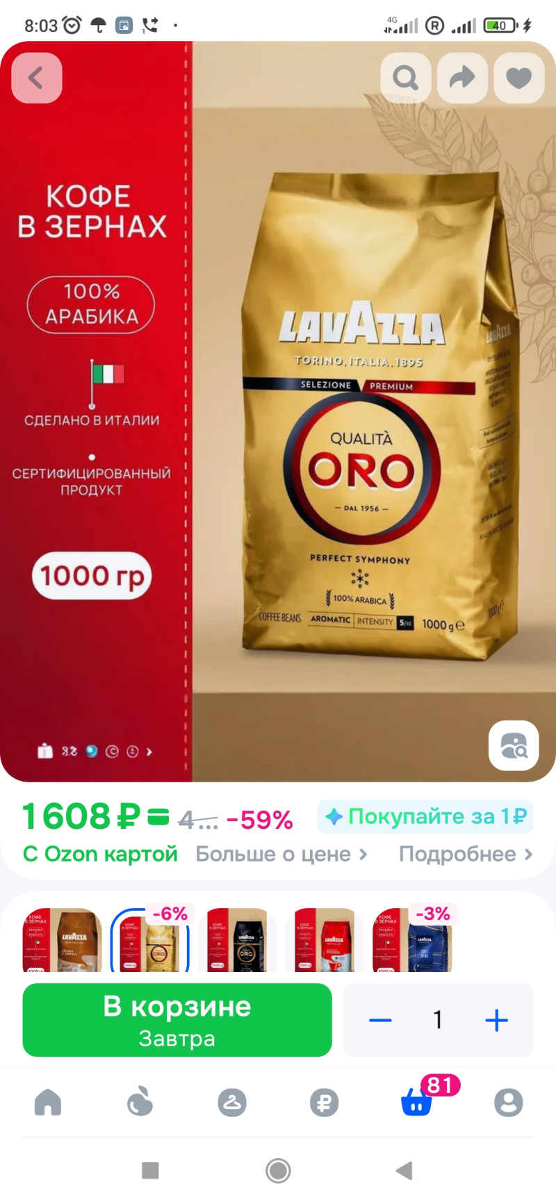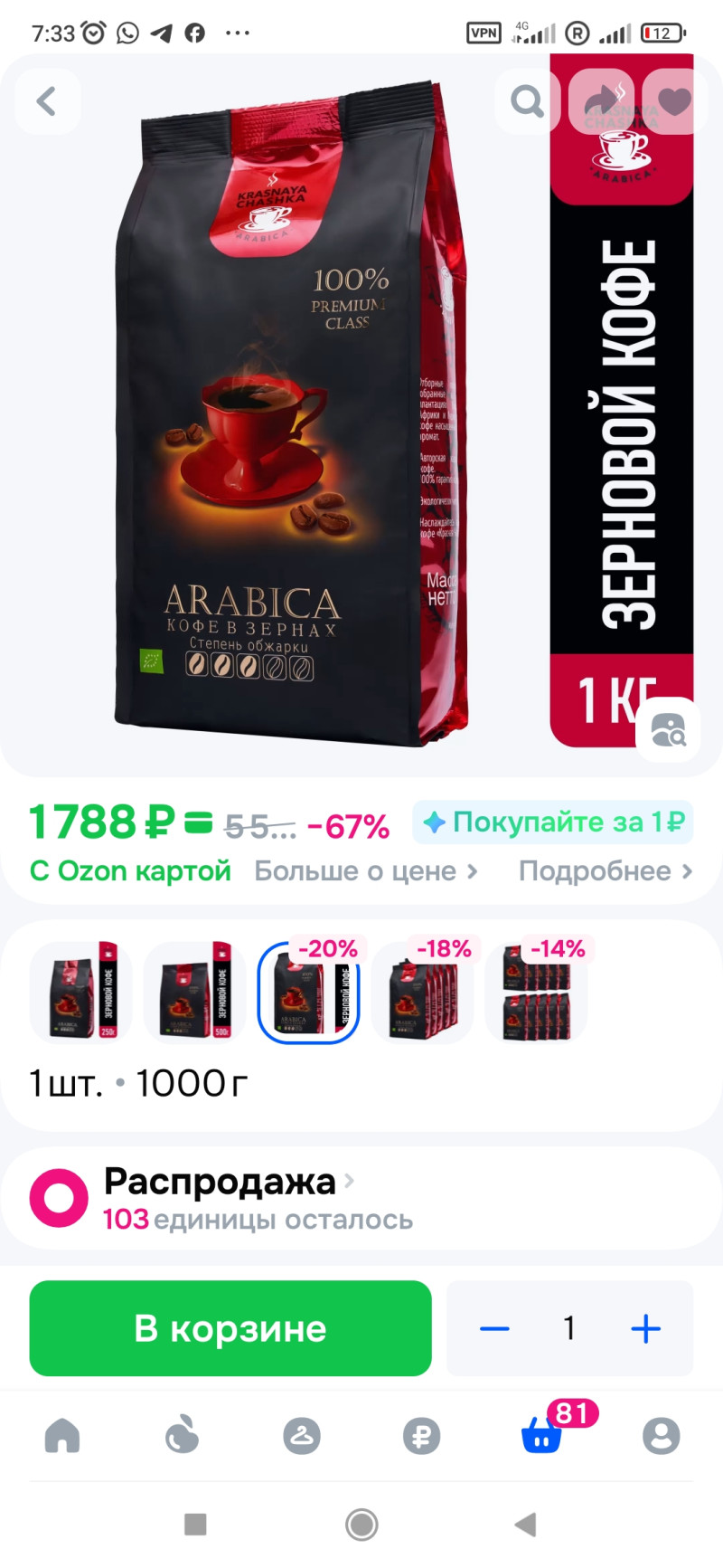 Работала в чайно-кофейном бутике и зерно у нас было очень хорошее,многие клиенты об этом говорили.Как уволилась, себе тоже стала такой заказывать на ВБ,цена 2500 за кг.Мне его хватит на 3 месяца.