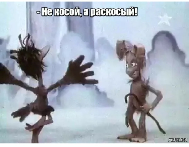 Вспомнился мультфильм "Влюбчивая ворона" (1988г): "не косой - а раскосый, не заяц - орёл"...