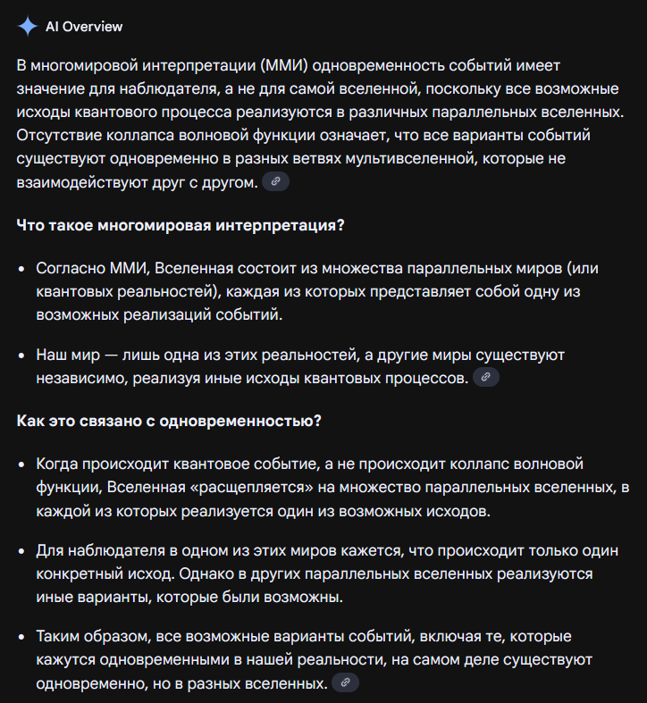 вкратце пока писал всякую заумную хрень поймал себя на мысли что случись два одновременных события не очень понятно на сколько частей при этом разделится вселенная, но ИИ успокоил))