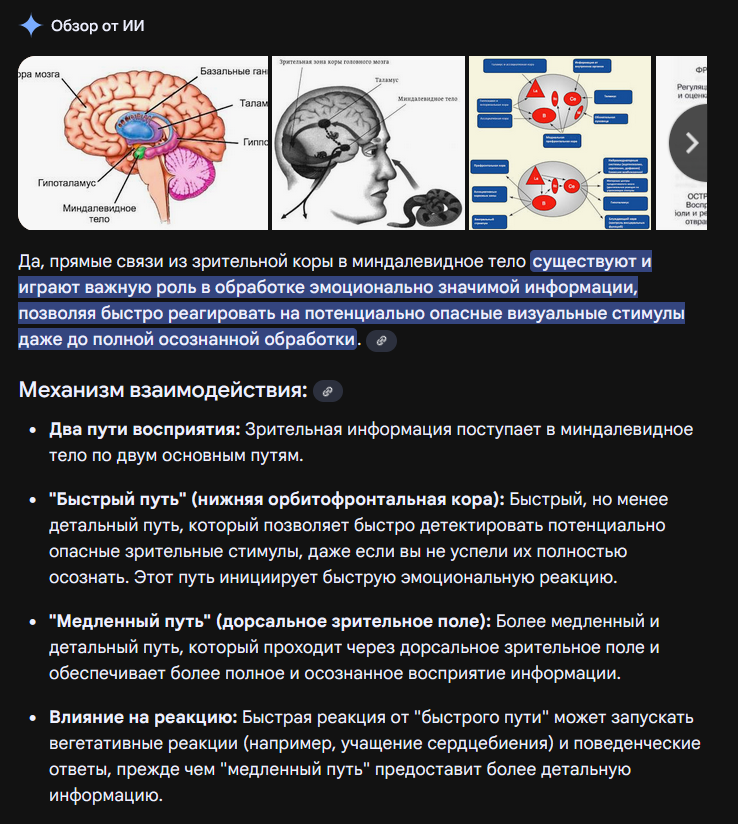 а то до сих пор у меня выдаёт такое, как ему только не стыдно, амигдала напрямую соединена со зрительной корой, безобразие, всё должно проходить через неокортекс, и точка