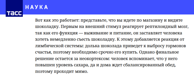 смотрите, вот популярная статья, там нигде не написано что три части мозга работают независимо, наоборот, в примере информация проходит и анализируется всеми частями