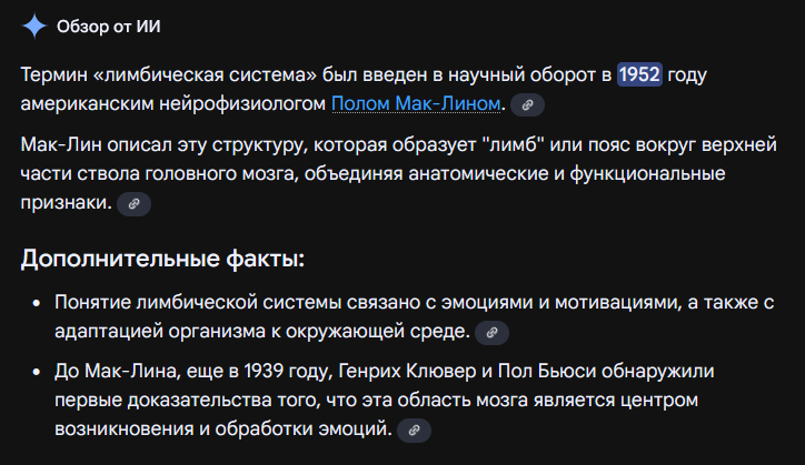 Лимбическая система, как выяснилось позже, усьроена довольно сложно и четких ее границ не выявили. Но как структура целостная, системная она есть
