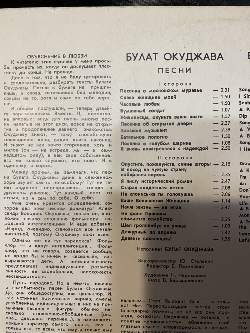Окуждаву можете сами песни сфоткать? В каком состоянии пластинка?