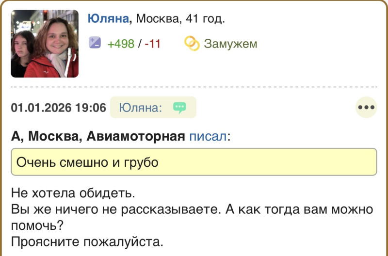 Всю тему не прочёл, но, по-моему, Москвичка с Вами по- доброму общалась. Значица, не только злоба.