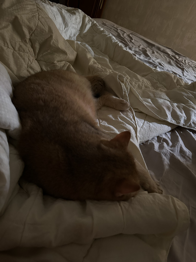 У меня отпуск незапланированный 🙈 могу чуть-чуть не спать Котичке под подушкой не нравится, он рядом хочет