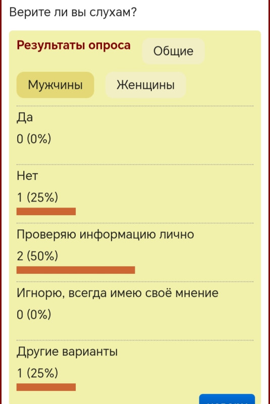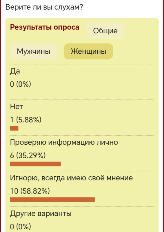 Интересно, что у мужчин совсем нет своего мнения, а у женщин есть.