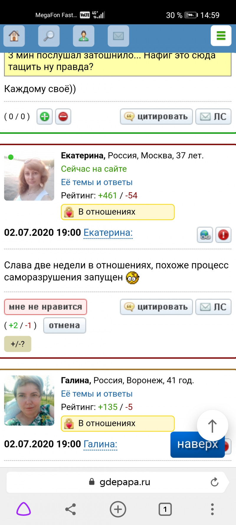 Вот Вы уже пофантазировпли сколько Слава в отношениях и что с ними (отношениями) происходит (саморазрушение) ... Балаболка...