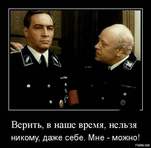 "Контрразведчик должен знать всегда, как никто другой, что верить в наше время нельзя никому, порой даже самому себе. Мне можно." (с)