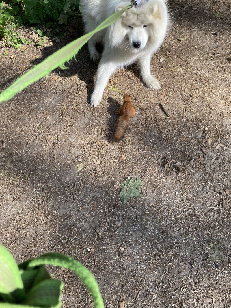 Собака мимо места встречи до сих пор спокойно проходить не может. Ну и белки ей больше не друзья . Оскорблена такой дерзостью
