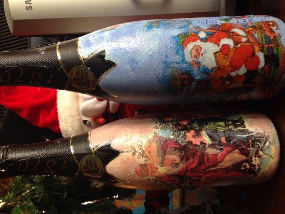 Шампанское конечно купила, а на бутылках мое декупаж далековато мне до славы Васнецова