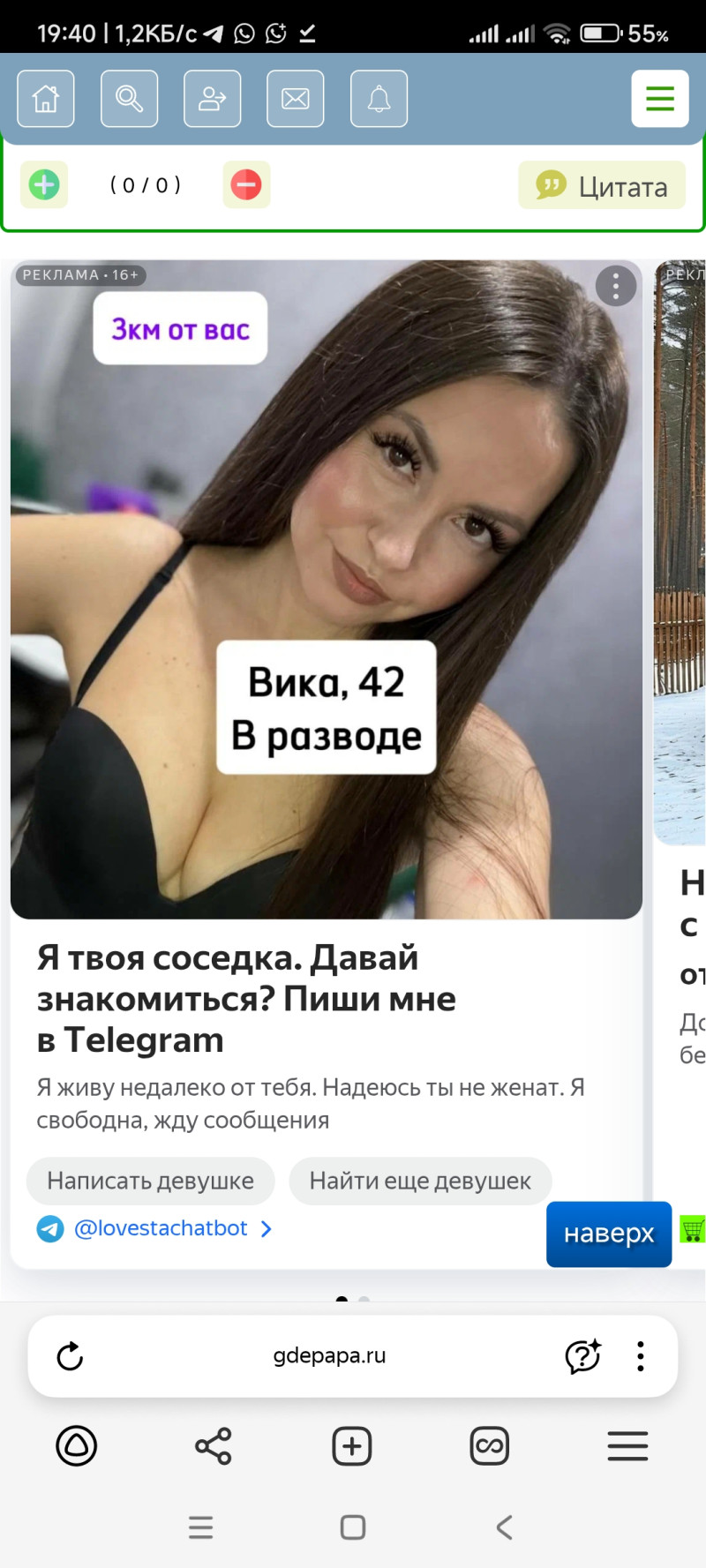 А отношатель не пронюхает про активную движуху на сайте знакомств? Интересно прям. И темы не про пирожные и огород.