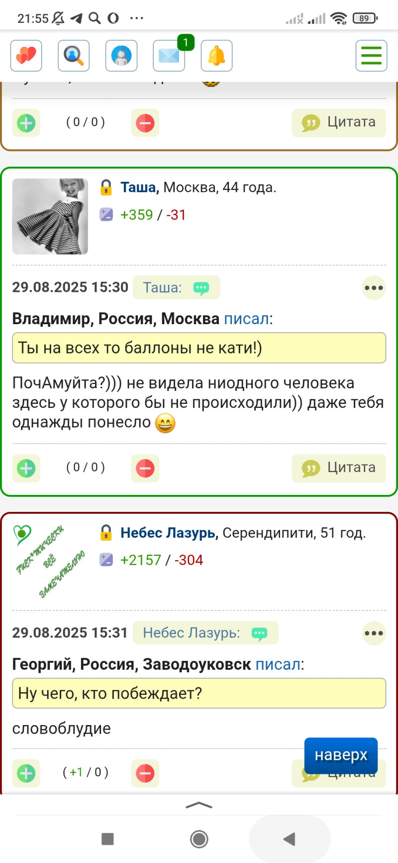 Юль, ну, вообще, не объективно. Причем здесь создайте темы умные про космос и т.д. Тема же не об этом. Все устали от необоснованного хамства и унижений по гендеру. Это беспричинно, намеренно и выглядит мерзко. Вот моя тема, например. Я никого не оскорбила, не унизила создала как можно мягче текст с простой просьбой в надежде на конструктивные диалоги и что? Вот,например, сообщение Кировского. Просто сообщение в теме, ни в ответ кому-то. "Форум это проекция. 8из 10 тем на форуме созд