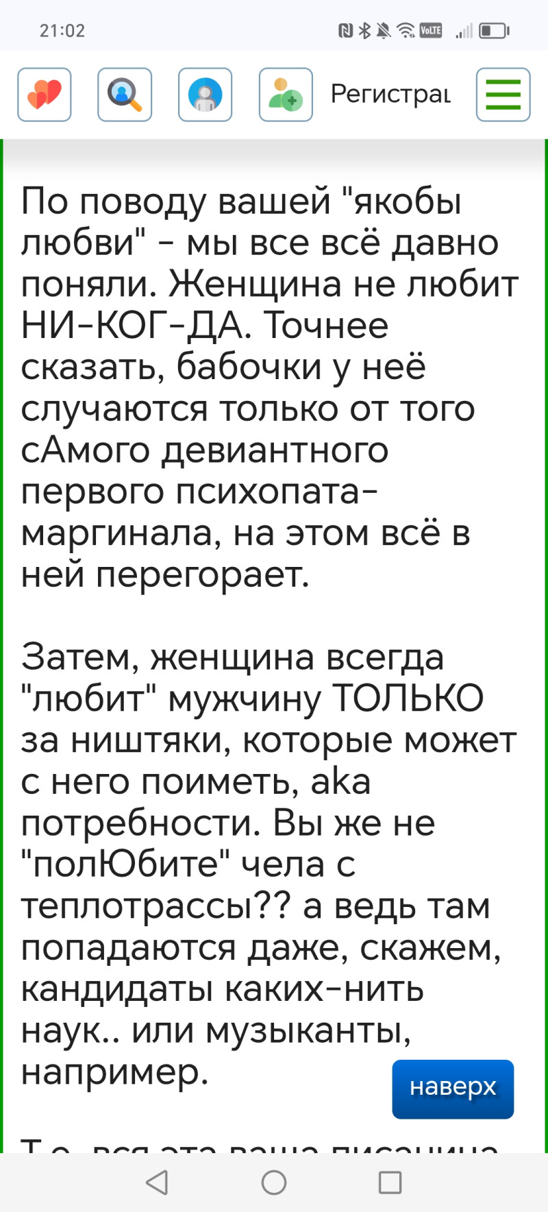 Дамы, да Я всё это понимаю... Но вижу несколько иначе. То, что они пишут и порой излагают мысли не совсем приятные глазкам Вашим 👁👁 откровенно всё же взято из жизни и является правдой. Просто читать следует "между строк" А, что касается "гендерных войн" — увы, но женщины здесь такое пишут, что в общих, что в личку... Жесть. И на удивление почему-то женщины не жалуются на подобные комментарии. Исключительно акцент на мужчинах.